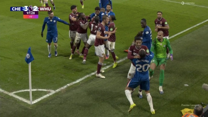 在那场赛事 中,切尔西致胜球 后,西汉姆联球员特劳雷先是把库库雷利亚拽倒在地,随后佩德罗上前为队友出头。于是托迪博上来锁喉佩德罗,中途马夫罗帕诺斯还一巴掌想扇帕尔默被躲开。裁判 向特劳雷、佩德罗出示警告 。最终VAR介入,托迪博被直红罚下。